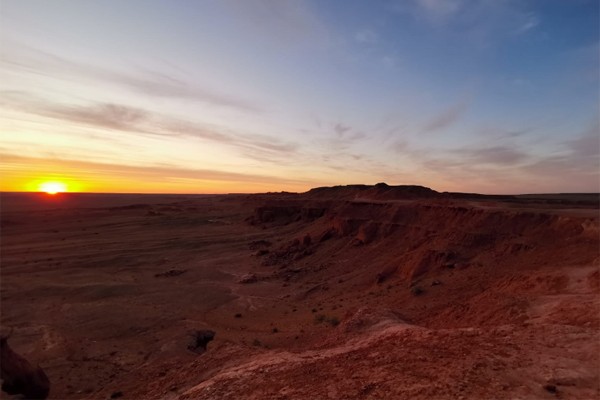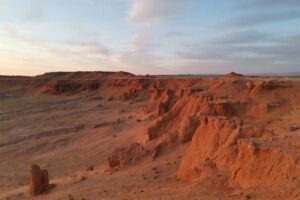Today we will drive to Bayanzag. The land is known as” Rich Saxaul”. Back in the 1920s the American paleontologist Roy Chapman Andrews discovered dinosaur skeletons and eggs. The finds were carried by 70 camels. The American paleontologist called this place “Flaming Cliffs”. Enjoy stunning nature and the rare plants known as “saxaul”. Highlights are hiking and visiting a nomadic family.