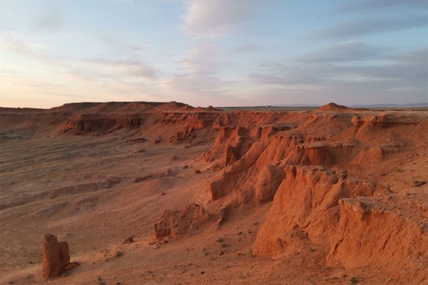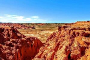 Today we will drive to Tsagaan Suvarga, known as the White Stupa. It is located in Ulziit, the Dund-Gobi province. Over thousands of years, the wind has created an amazing structure. The cliffs are 30-60m meters high and over 400 meters wide facing to the east. From the top of the cliff, you have the opportunity to enjoy the breathtaking colorful landscape.